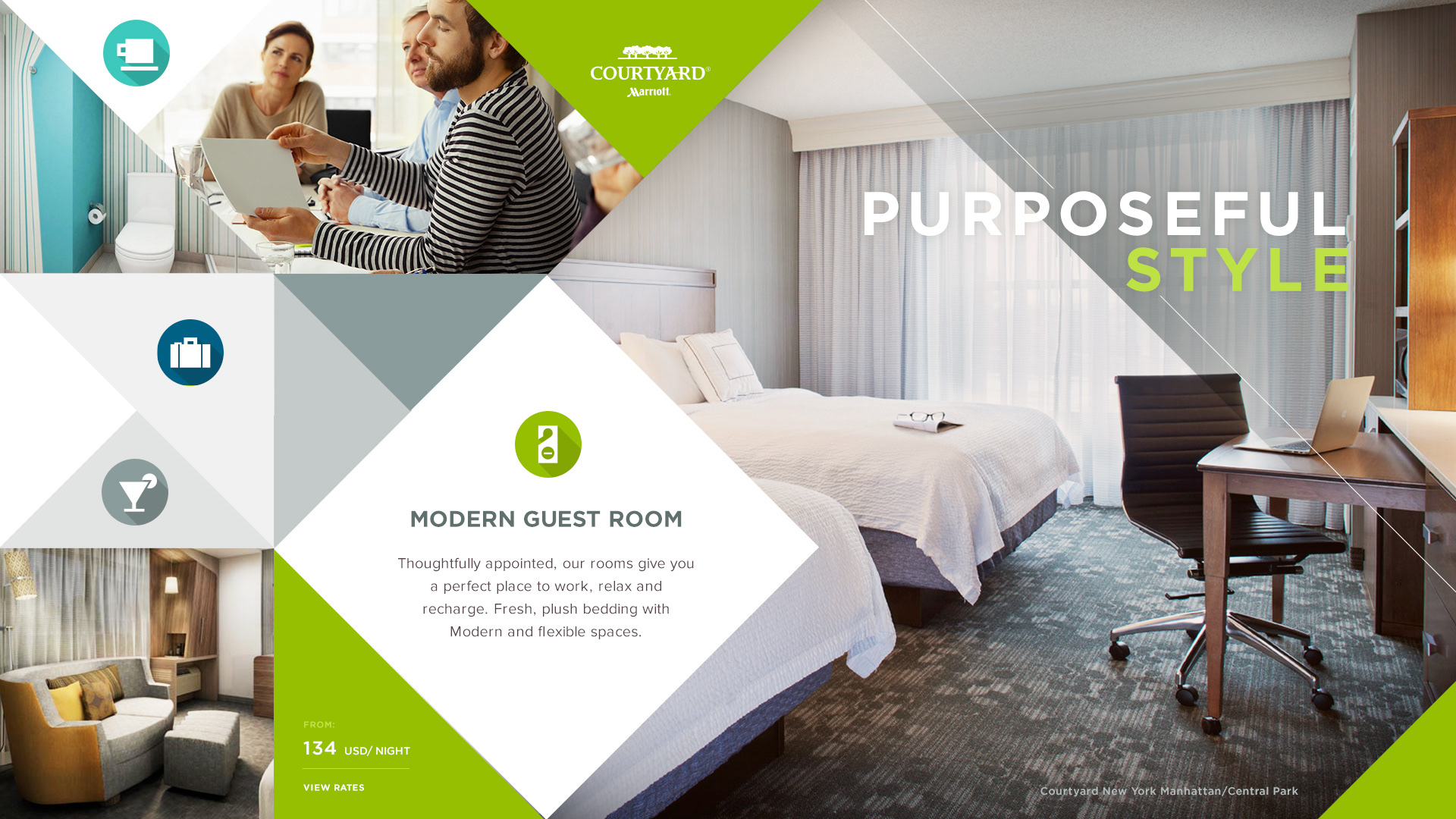 Re-branding Courtyard Hotel, from branding to property level stationary. And then create a responsive web design for the new Courtyard site. http://courtyard.marriott.com/