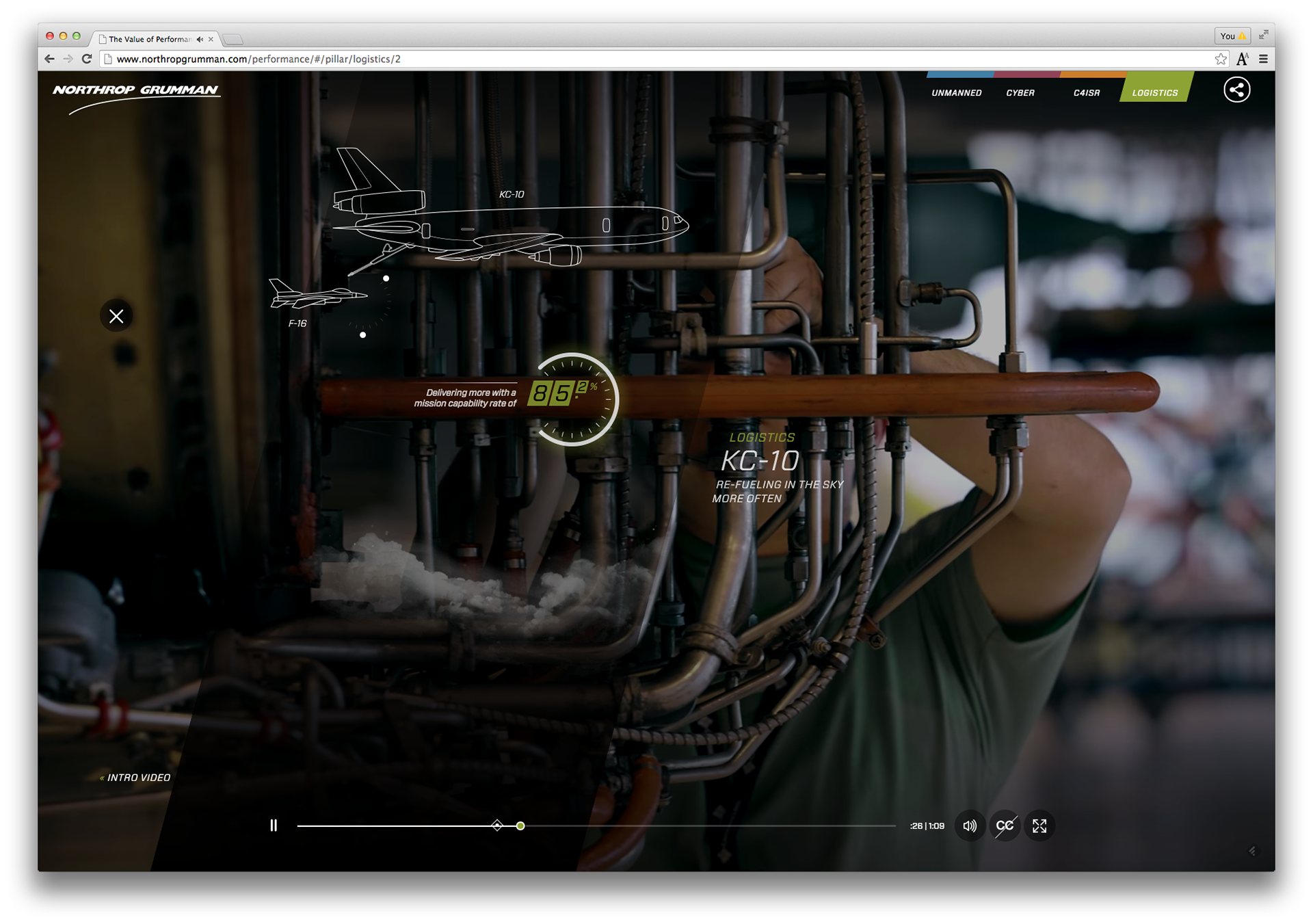 Design a website to house 16 of Northrop Grumman videos. www.northropgrumman.com/performance