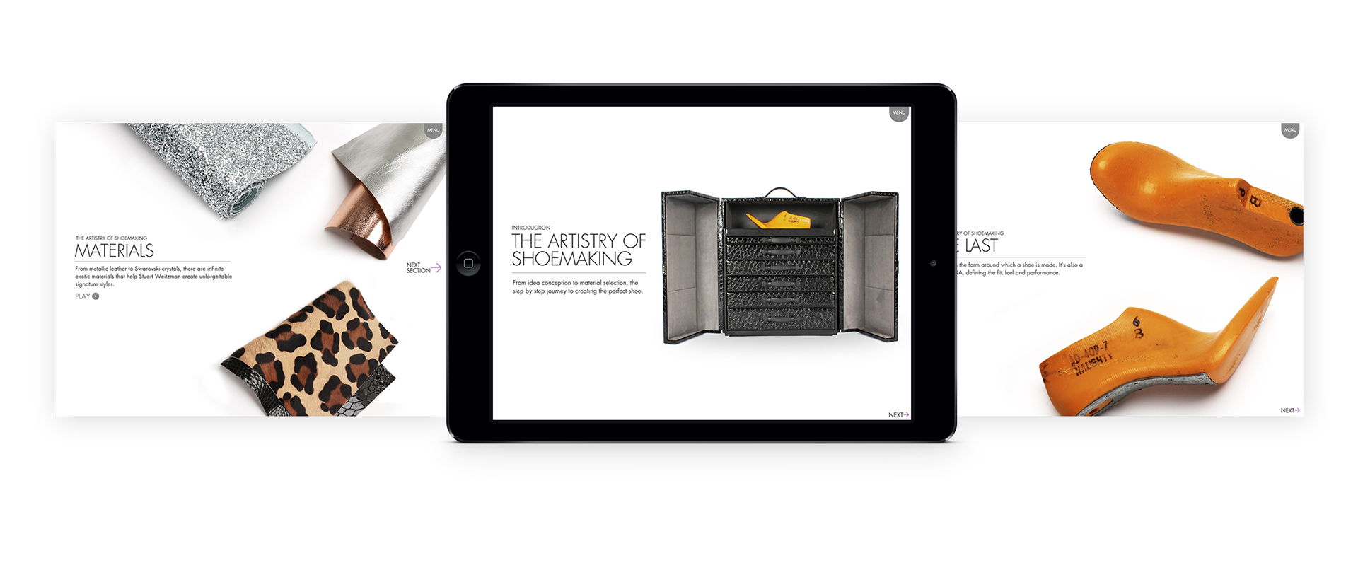 Design a Internal App for Stuart Weitzman to show case their seasonal collections. It also include Shoes Making Guide to teach Sales personal how SW shoes are made.